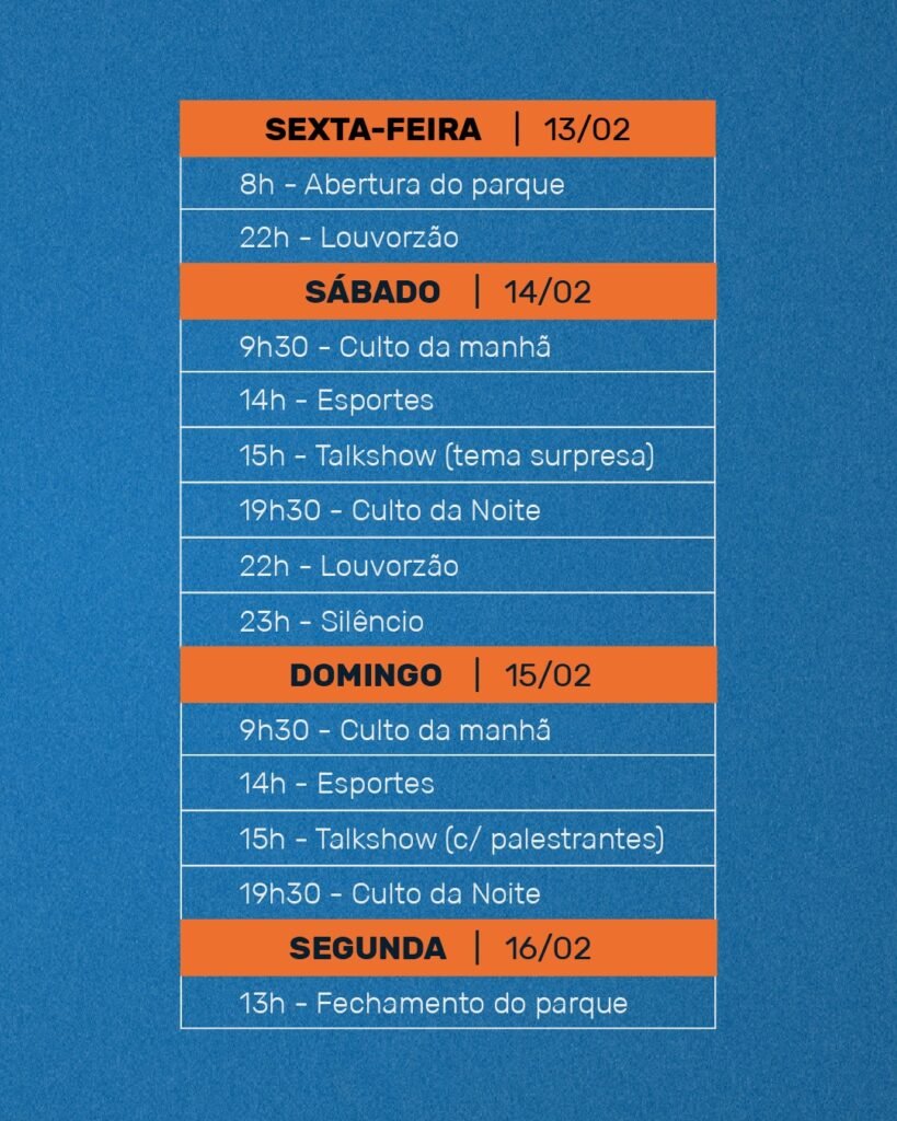 Nosso Encontrão é um tempo de encontro com Deus, comunhão e descanso saudável. A principal recomendação é: